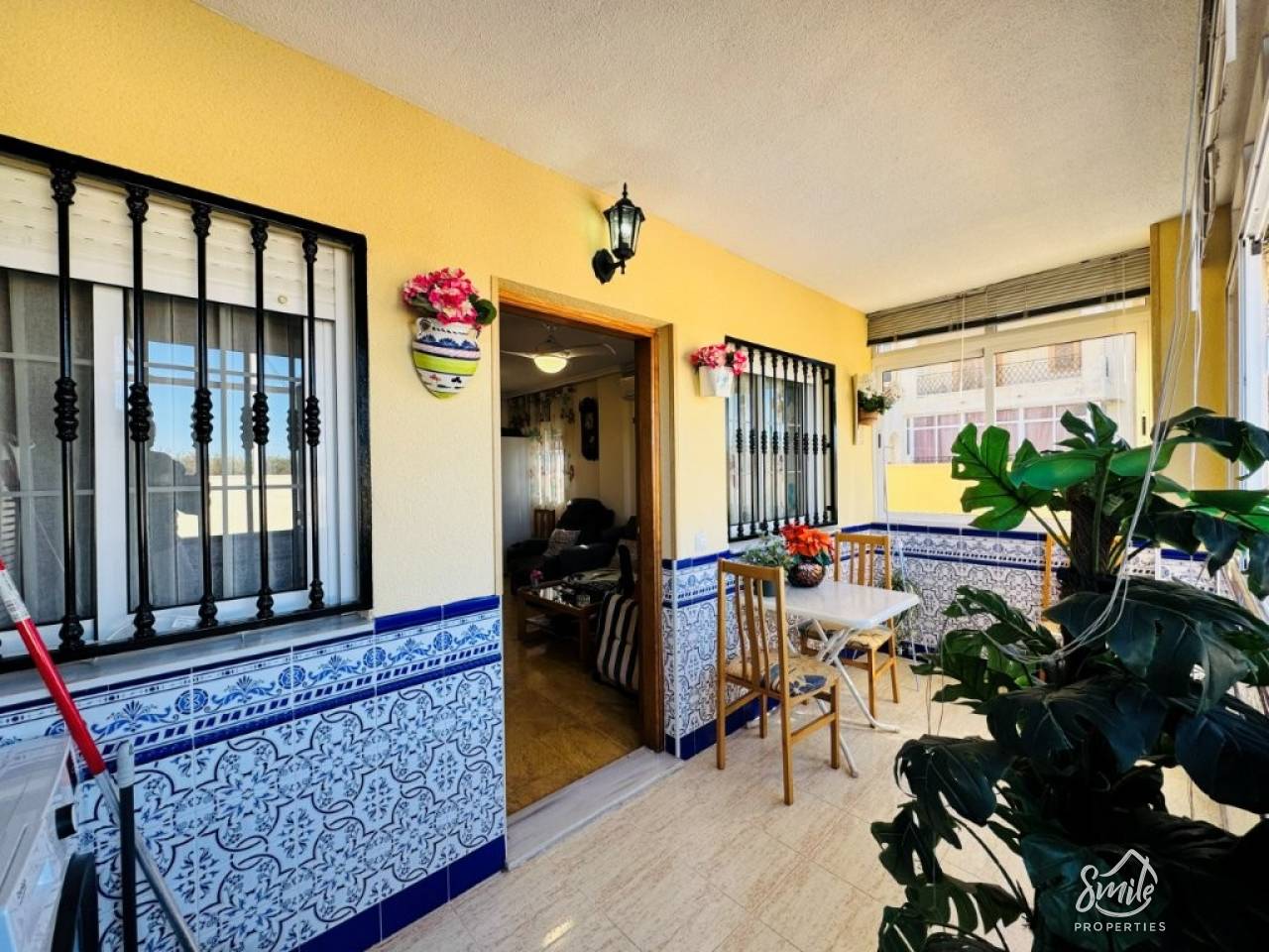 Den ligger på en 200 m² stor tomt, bestående av en 130 m² terrass och en 70 m² boyta. Lägenheten har två sovrum, ett vardagsrum/matsal, en sluten veranda, ett komplett badrum och ett kök med tillgång till terrassen.