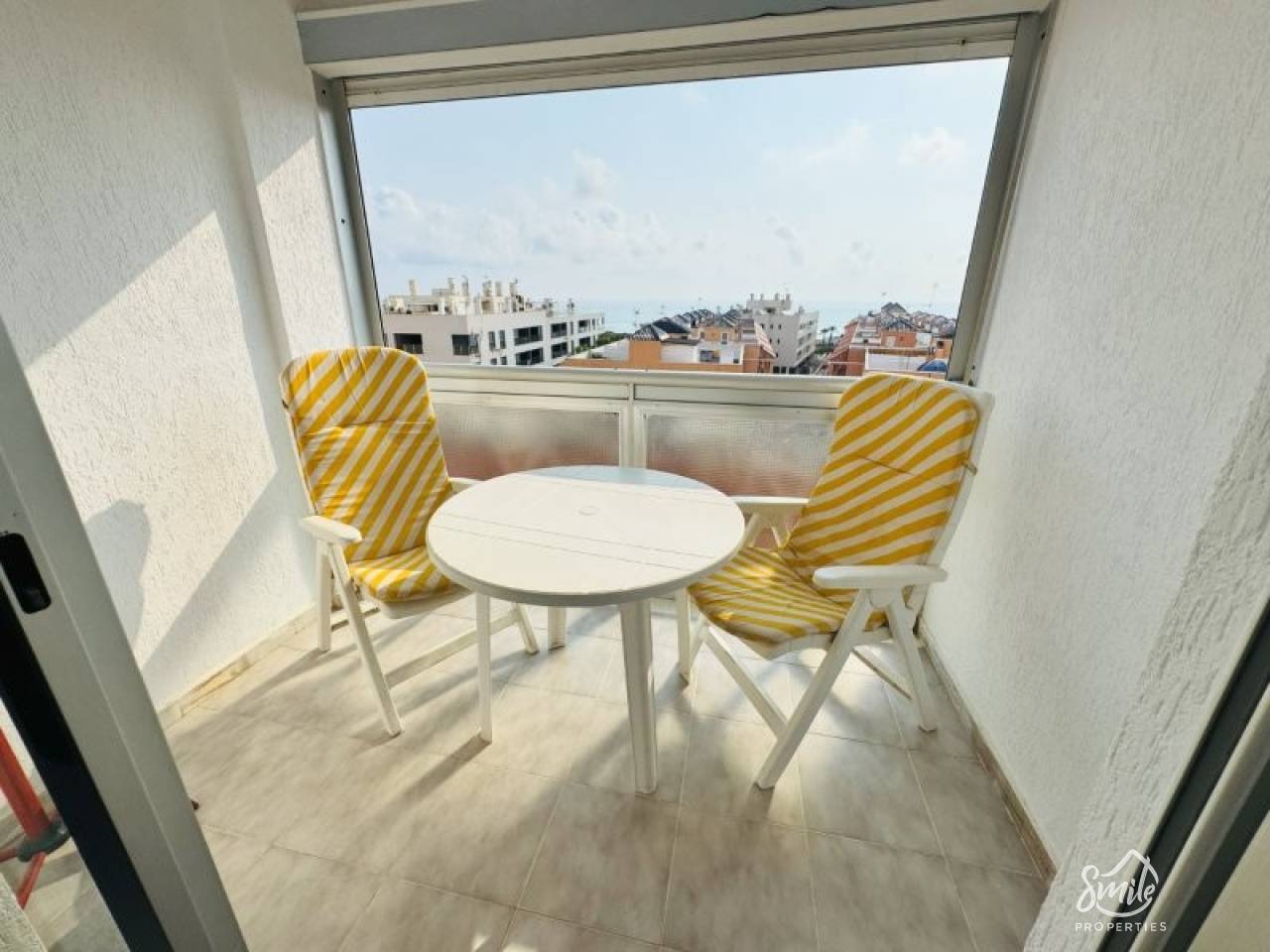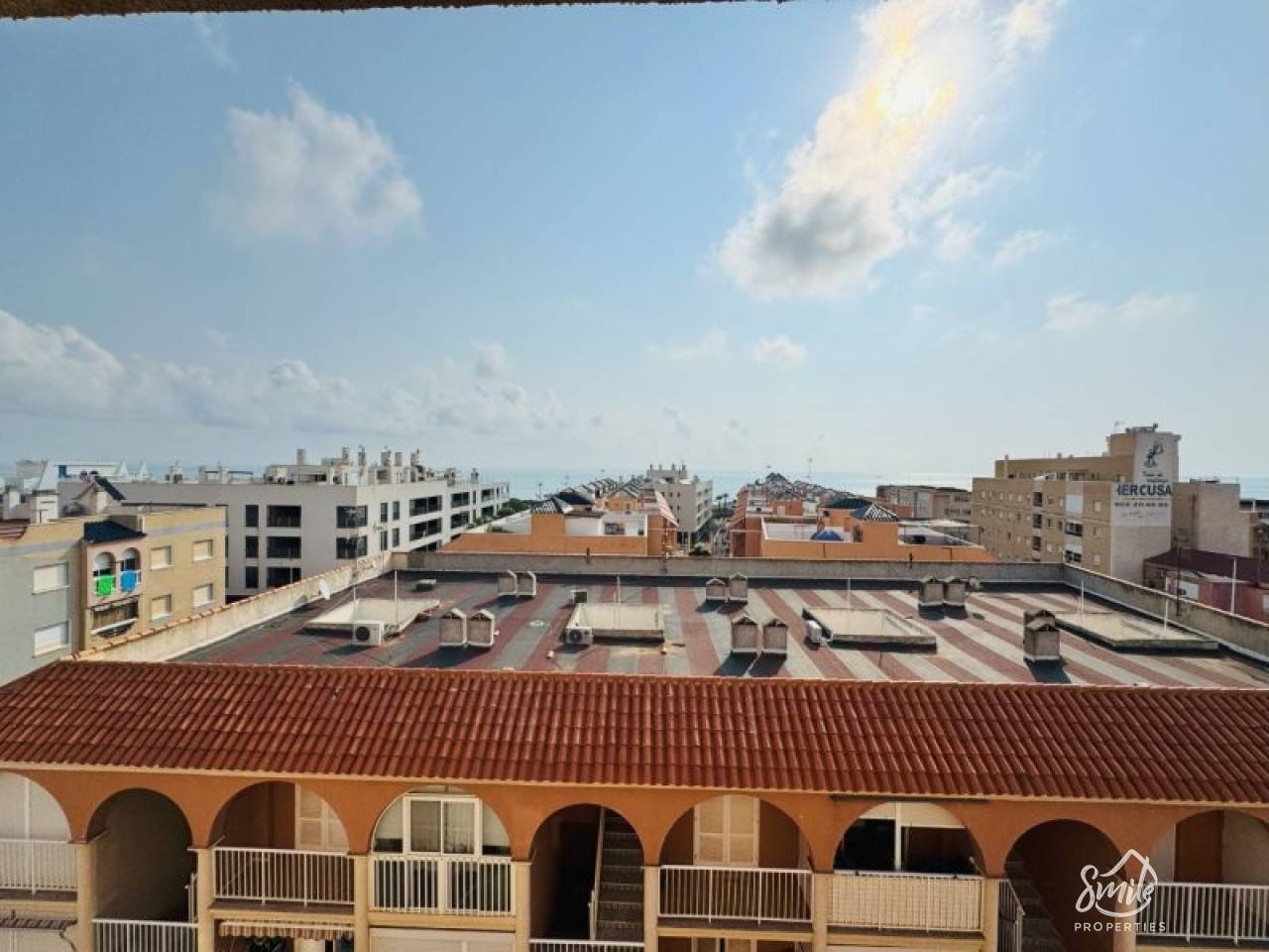 Apartamento de 1 dormitorio, muy bien cuidado, situado en la quinta planta. Terraza con vistas frontales al mar, a solo 200 metros de la playa y en el centro de La Mata. Incluye plaza de garaje y acceso a solárium comunitario. Comunidad de 400 € al año y IBI de 150 €. Ideal para quienes buscan comodidad, cercanía al mar y un hogar listo para disfrutar.